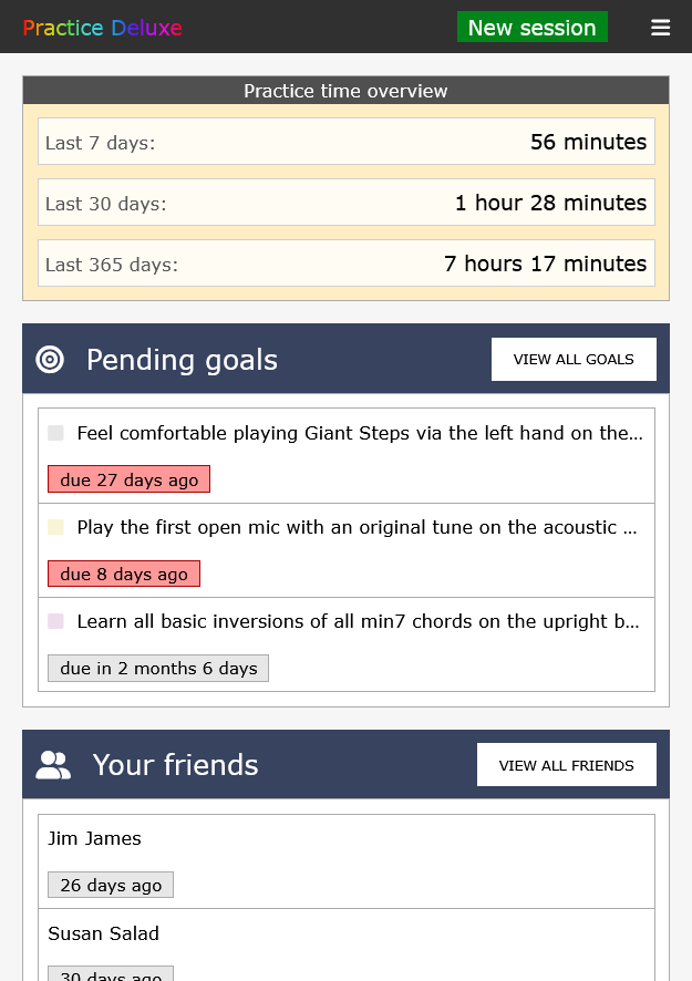 Focus your practice sessions toward specific goals to get better even quicker. Goals are customizable and require